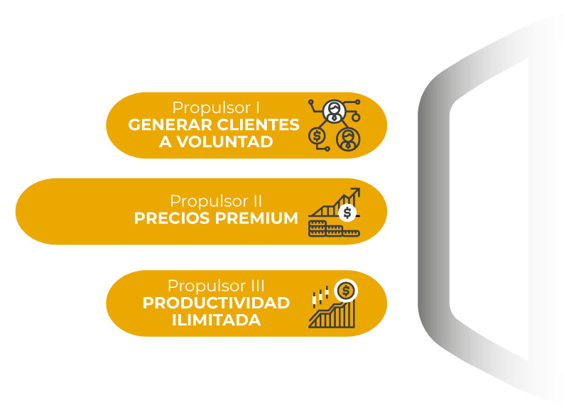 Una vez montados y en ejecución, los 3 propulsores son sistemas que permitirán que tu negocio pase al top 10% de negocios en Hispanoamérica.